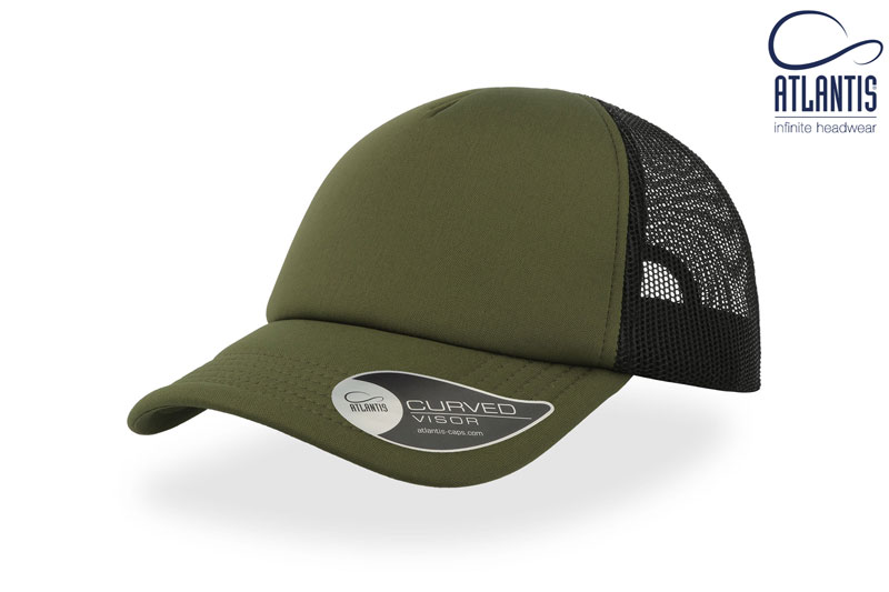 High Crown ''TRUCKER CAP'' with polyester foam front panel as peack side and back panels in mesh material. PVC back strap.