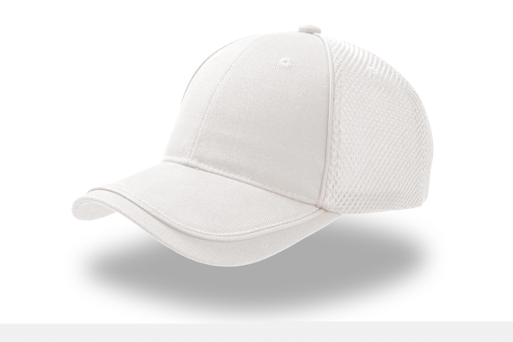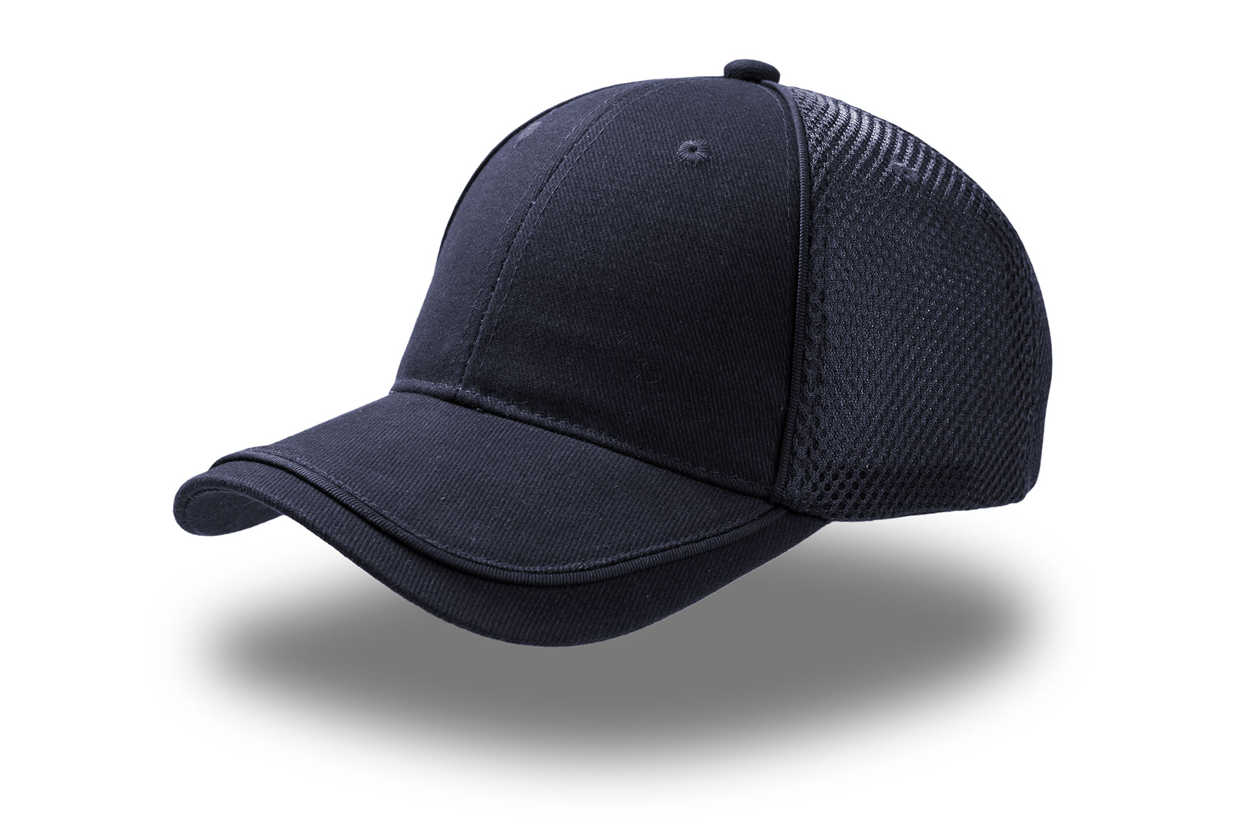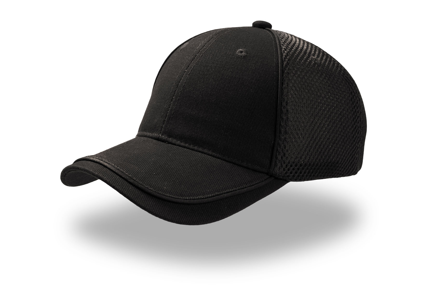 Beisbola cepure no biezas matētas kokvilnas pinuma priekšpusē un elpojošs siets sānu un aizmugurējos paneļos.