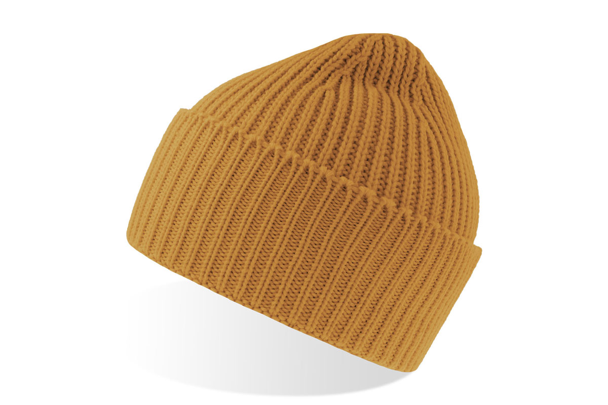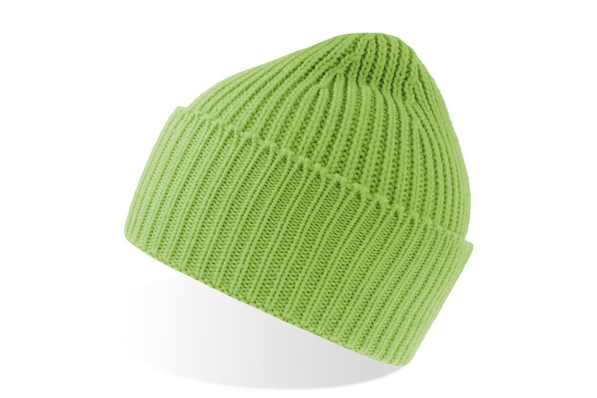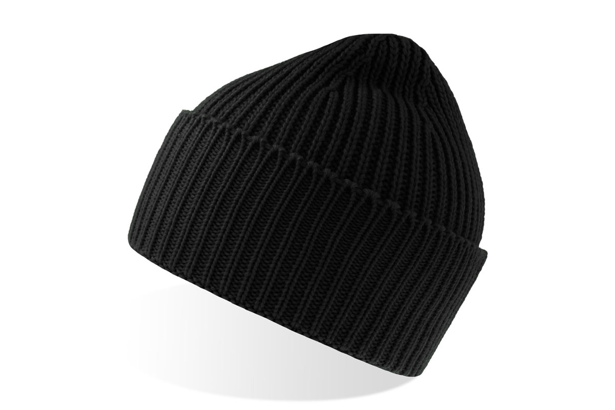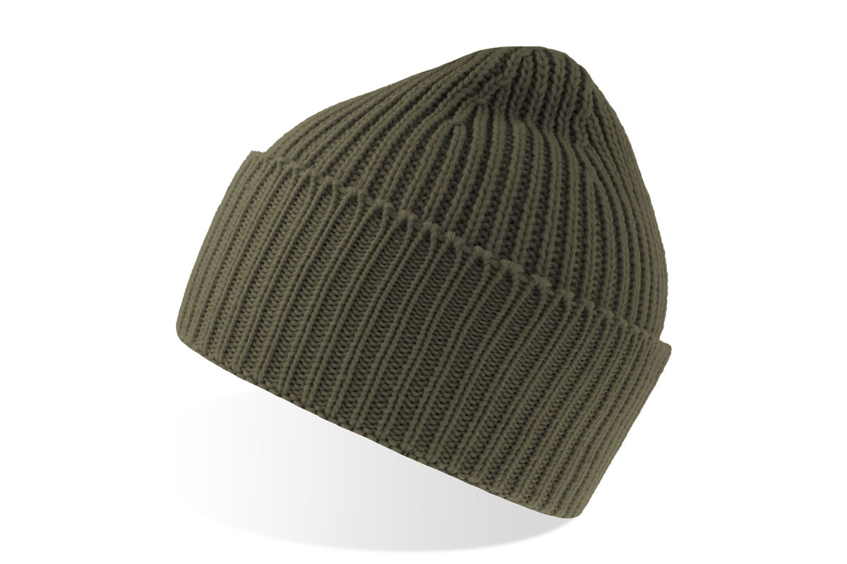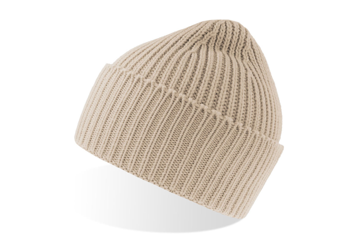 Kupla, rievota adīta beanie tipa cepure no mīkstas, siltas Polylana® dzijas. Viena slāņa adījums ar plati salocītu aploci.